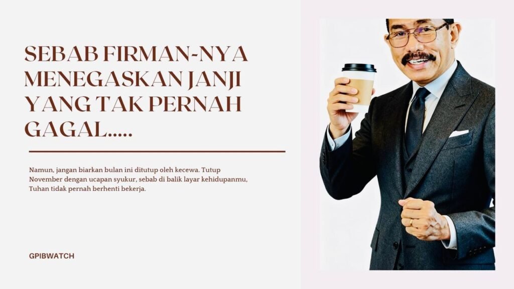 Jakarta, gpibwatch.id — Kita tiba di penghujung November—dengan hati yang mungkin letih, dengan doa-doa yang belum semuanya terjawab, dan dengan air mata yang masih mengering di sudut jiwa. Ada jejak penantian yang membuat langkah terasa berat, ada harapan yang sempat goyah oleh kenyataan.